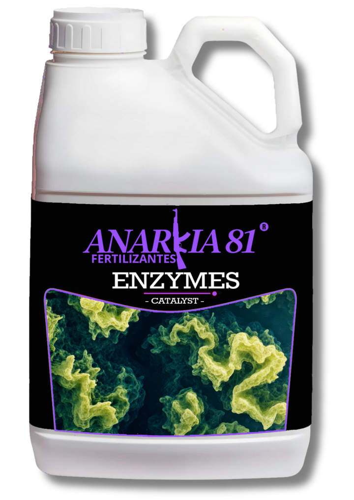 Enzymes de Anarkia 81 es un complejo enzimático diseñado para descomponer los desechos del suelo y los transformarán en carbohidratos y otras moléculas que nuestras plantas podrán asimilar.